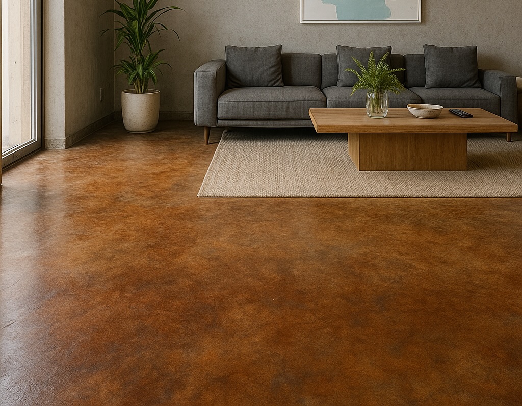 Add warmth, depth, and character to your space with stained concrete—a versatile finish that transforms ordinary concrete into a rich, marbled surface with natural movement and color variation. Perfect for kitchens, living rooms, basements, patios, commercial spaces, and garages, stained concrete delivers a high-end look that’s durable, low-maintenance, and entirely unique to your project.