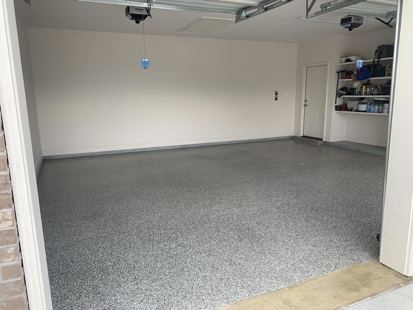 We primarily install polyaspartic floor systems. They’re fast-curing, moisture-tolerant, and specifically suited for residential garages. Polyaspartic is resistant to UV discoloration, cures faster, handles moisture better, and is far more resistant to hot-tire pickup and peeling. Epoxy can work in controlled environments, but garages are not controlled environments.